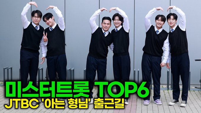 [뉴스인스타 양철수기자] 4월 17일(목) 오전, 경기도 고양시 일산동구 장항동 JTBC스튜디오일산에서 진행되는 JTBC 예능 ‘아는 형님’ 녹화를 위해 미스터트롯 TOP6 眞 김용빈, 善 손빈아, 美 천록담(이정), 춘길(모세), 최재명, 추혁진이 스튜디오에 도착해 포토타임을 갖고 있다.