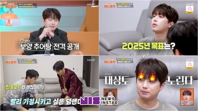 그렇게 좌충우돌 끝에 완성된 추어탕을 함께 먹으며 이찬원과 친구들은 2025년 목표에 대해 이야기했다. 2024년 KBS 연예대상을 수상한 이찬원은 롤모델처럼 존경하는 선배 김성주의 메시지가 가장 감격스러웠다고 털어놨다. 이어 2025년 목표는 연예대상 2연패라고 귀여운 야망(?)을 공개하기도. 해당 장면은 분당 시청률 5.2%를 기록하며 이날 방송 ‘최고의 1분’을 장식했다.