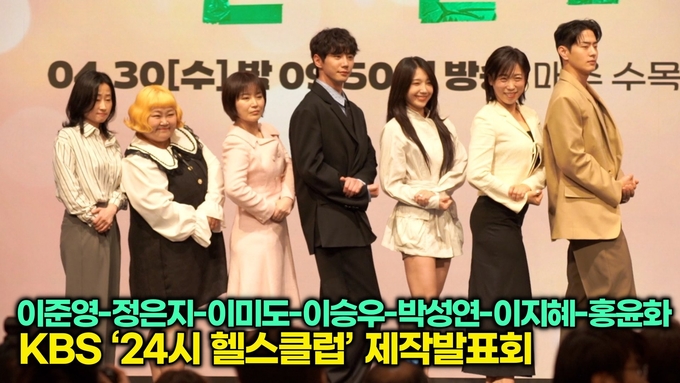 [뉴스인스타 양철수기자] 4월 29일(화) 오후, 서울시 구로구 신도림 디큐브시티 더 세인트에서 열린 KBS 2TV 새 수목드라마 '24시 헬스클럽' 제작발표회에 배우 이준영, 정은지, 이미도,이승우 ,박성연, 이지혜, 홍윤화가 참석해 포즈를 취하고 있다.