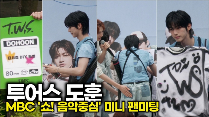 [뉴스인스타 양철수기자] 5월 3일(토) 오후, 서울시 마포구 상암동 MBC본사에서 '쇼! 음악중심' 생방송 출연을 마치고 TWS(투어스) 신유, 도훈, 영재, 한진, 지훈, 경민이 팬덤 42(사이)와 미니 팬미팅을 진행하고 있다.