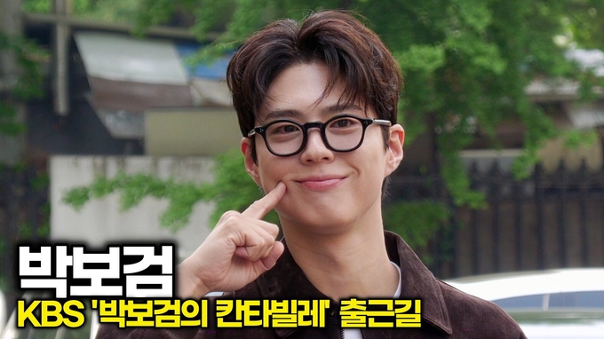 5월 13일(화) 오후, 서울시 영등포구 여의도 KBS 신관 TV공개홀에서 진행되는 KBS 2TV 예능 '더 시즌즈 - 박보검의 칸타빌레' 녹화를 위해 진행자 배우 박보검이 방송국에 도착해 포즈를 취하고 있다.