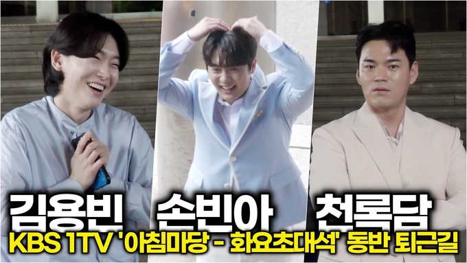 [뉴스인스타 양철수기자] 5월 20일(화) 오전, 서울시 영등포구 여의도 KBS 본관에서 생방송으로 진행된 KBS ‘아침마당 - 화요초대석' 녹화를 마치고 가수 김용빈, 손빈아, 천록담이 퇴근하고 있다.