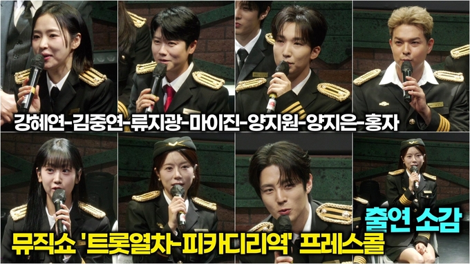 [뉴스인스타 양철수기자] 6월 19일(목) 오후, 서울시 종로구 돈의동 CGV 피카디리1958에서 뮤직쇼 '트롯열차-피카디리역'의 프레스콜이 열려 트롯가수 강혜연, 김중연, 류지광, 마이진, 양지원, 양지은, 홍자가 참석해 공통 인터뷰를 진행하고 있다.