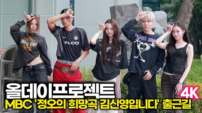 [뉴스인스타 양철수기자] 7월 8일(화) 오전, 서울 마포구 상암동 MBC에서 진행되는 MBC 라디오 ‘정오의 희망곡 김신영입니다’ 생방송에 출연하기 위해 그룹 올데이프로젝트(ALLDAY PROJECT) 애니, 타잔, 베일리, 우찬, 영서가 방송국에 도착해 포즈를 취하고 있다.