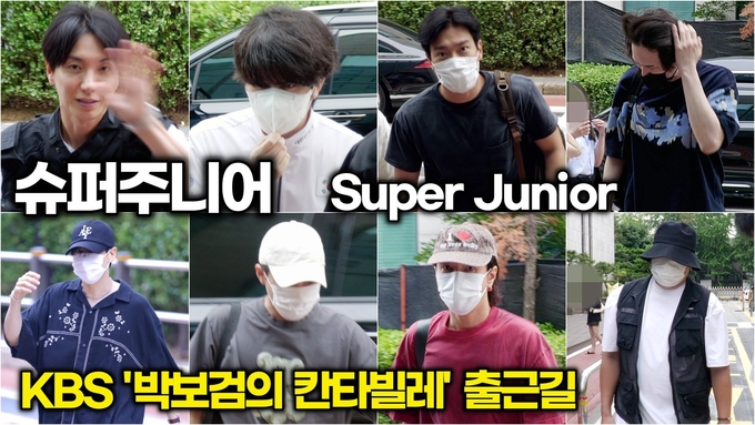 [뉴스인스타 양철수기자] 7월 15일(화) 오전, 서울시 영등포구 여의도 KBS 별관 TV공개홀에서 진행되는 KBS 2TV 예능 '더 시즌즈 - 박보검의 칸타빌레' 녹화를 위해 그룹 슈퍼주니어(Super Junior) 신동, 려욱, 동해, 예성, 최시원, 규현, 희철, 은혁, 이특이 방송국에 도착해 포즈를 취하고 있다.