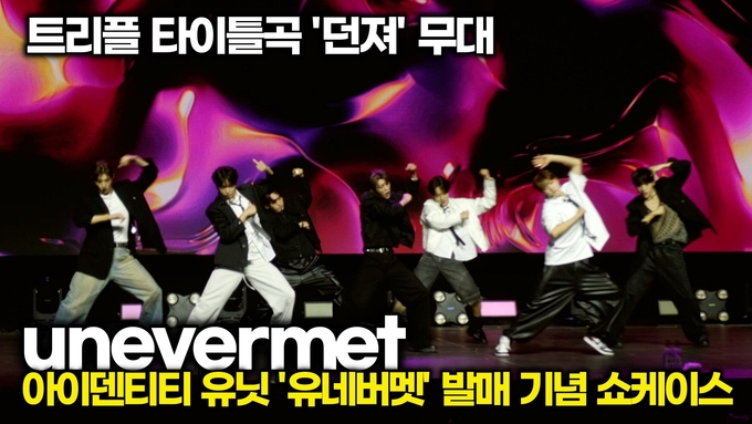 [뉴스인스타 양철수기자] 8월 11일(월) 오후, 서울시 용산구 한남동 블루스퀘어에서 24인조 대형 보이그룹 아이덴티티(idntt) 유닛 그룹 유네버멧(unevermet) 동명의 데뷔 앨범 '유네버멧' 발매 기념 쇼케이스가 열려 김도훈, 김희주, 최태인, 이재영, 남지운, 김주호, 이환희가 참석해 트리플 타이틀곡 '던져' 무대를 선보이고 있다.