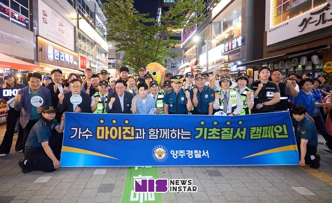 양주경찰서(서장 이기범)는 8월 11일 오후 8시, 옥정 중심상가 일대에서 *‘가수 마이진과 함께하는 기초질서 캠페인’*을 열고 시민들에게 기초질서 확립의 중요성을 알리는 현장 홍보 활동을 펼쳤다.