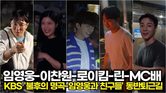 [뉴스인스타 양철수기자] 8월 18일(월) 오전, 서울시 영등포구 여의도 KBS 신관 TV공개홀에서 진행된 KBS 2TV ‘불후의 명곡 - 임영웅과 친구들 특집’ 녹화를 마치고 린, 로이킴, 최유리, 조째즈와 임영웅이 방송국을 나서고 있다.