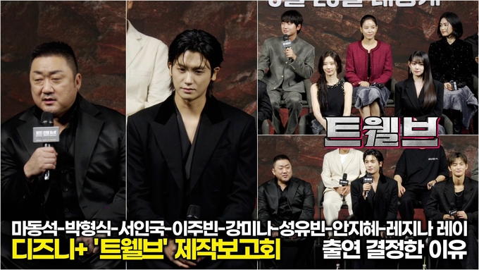 [뉴스인스타 양철수기자] 8월 20일(수) 오전, 서울시 중구 장충동 앰버서더 서울 풀만 호텔에서 디즈니+ 드라마 ‘트웰브’ 제작발표회가 열려 배우 마동석, 박형식, 서인국, 이주빈, 강미나, 성유빈, 안지혜, 레지나 레이가 참석해 공통 인터뷰를 진행하고 있다.