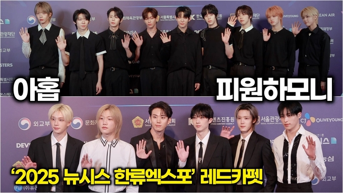 [뉴스인스타 양철수기자] 8월 28일(목) 오후, 서울시 중구 소공동 롯데호텔 서울에서 '2025 뉴시스 한류엑스포' 레드카펫에 참석해 그룹 아홉(AHOF / 스티븐, 서정우, 차웅기, 장슈아이보, 박한, 제이엘, 박주원, 즈언, 다이스케) 피원하모니(P1Harmony / 기호, 테오, 지웅, 인탁, 소울, 종섭)이 참석해 포토타임을 갖고 있다.