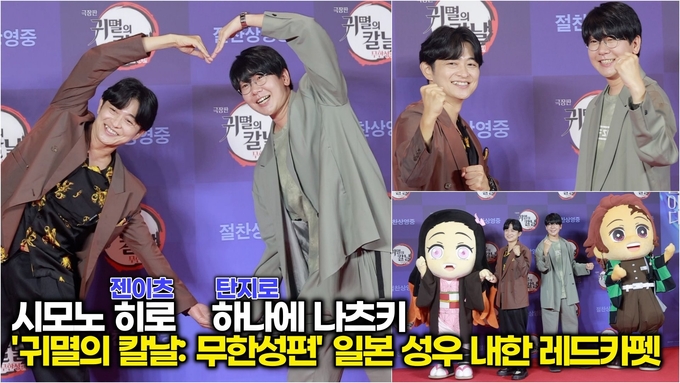 [뉴스인스타 양철수기자] 8월 30일(토) 오후, 서울시 용산구 CGV 용산아이파크몰에서 극장판 '귀멸의 칼날: 무한성편' 일본 성우 내한 레드카펫 행사가 열려 성우 하나에 나츠키(탄지로 역)와 시모노 히로(젠이츠 역)가 참석해 포토타임을 갖고 있다.