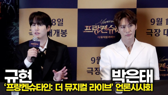 [뉴스인스타 양철수기자] 9월 9일(화) 오후, 서울시 성동구 성수동 메가박스 성수점에서 영화 ‘프랑켄슈타인: 더 뮤지컬 라이브’ 언론시사회 기자간담회가 열려 규현, 박은태 배우가 참석해 공통 인터뷰를 진행하고 있다.