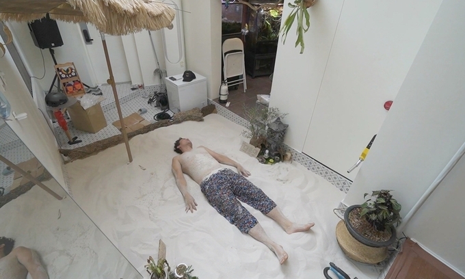 김대호는 상의를 벗고 모래 찜질을 하며 중정의 천창 아래에서 일광욕을 즐기는가 하면, 스쿼트와 푸시업 등 운동으로 ‘머슬 비치’ 분위기를 자아내 폭소를 유발한다. 격한 운동을 하고 열을 올린 김대호가 모래 범벅이 된 모습으로 지쳐 쓰러진 장면도 눈길을 모은다.