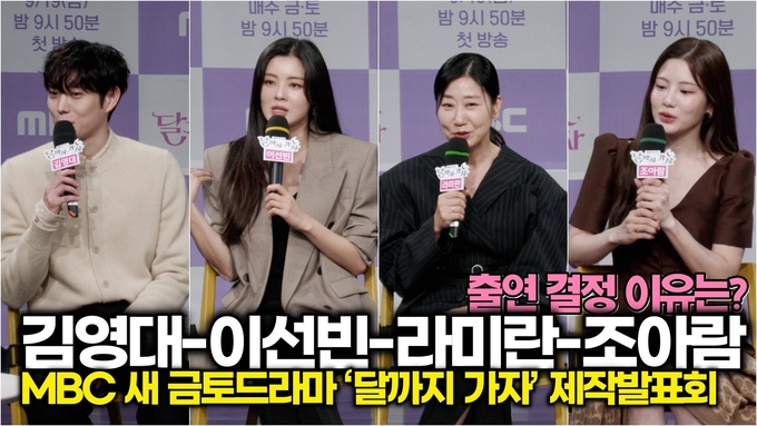 [뉴스인스타 양철수기자] 9월 16일(화) 오전, 서울시 마포구 상암동 MBC 골든마우스홀에서 MBC 새 금토드라마 ‘달까지 가자’ 제작발표회가 열려 배우 라미란, 이선빈, 조아람, 김영대가 참석해 공통 인터뷰를 진행하고 있다.