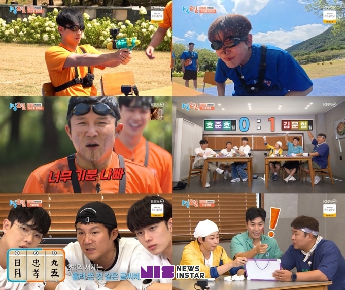 곧이어 앞이 보이지 않는 물안경을 쓰고 상대에게 먹물 총을 쏴야 하는 세 번째 미션 '직감을 믿어라'가 진행됐다. 멤버들의 불꽃 튀는 신경전이 펼쳐진 끝에 호준호 팀은 20개, 김문철 팀은 10개의 엽전을 각각 추가로 얻었다.