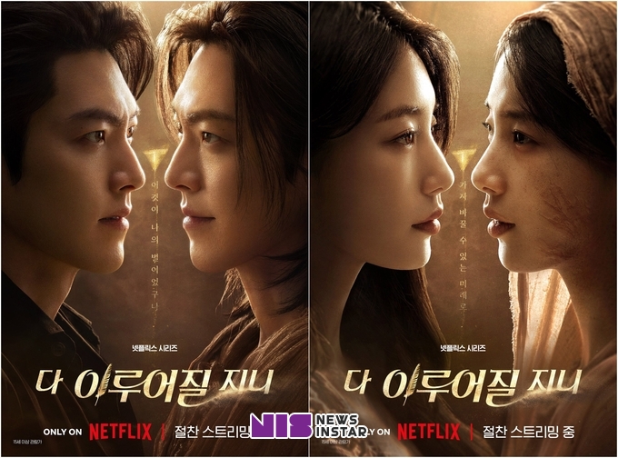판타지 로맨틱 코미디 <다 이루어질지니>는 웃음과 설렘, 애틋함까지 다양한 매력으로 시청자들을 매혹했다. 특히 전생과 현생을 잇는 ‘천년 로맨스’는 아는 맛으로 감동을 주다가도, 후반부로 갈수록 깊은 감정선을 드러내며 시청자들을 몰입시켰다. 그런 가운데 지니(김우빈 분)와 가영(수지 분)의 운명 같은 이야기를 담아낸 스페셜 전생 포스터가 공개됐다. 과거와 현재는 끊임없이 서로를 바라보기에 지니와 가영도 마치 과거에 얽매인 듯 보이지만, 두 인물은 닫힌 과거가 아닌 바꿀 수 있는 미래로 나아가기로 했다. 사무치게 애틋한 이들의 서사는 포스터에서도 깊은 여운을 남긴다.