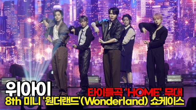 한편 여덟 번째 미니앨범 '원더랜드'(Wonderland)의 타이틀곡 '홈'(HOME)은 이모셔널 퓨처 베이스 팝 장르로, 우리가 함께 걸어온 시간, 그리고 앞으로도 이어질 특별한 약속을 이야기하는 곡이다. 힘든 순간에도 곁에 있어준 존재를 위아이와 팬에 빗대어 표현했으며, 멤버 장대현이 곡 작업에 참여해 진심을 담아냈다.