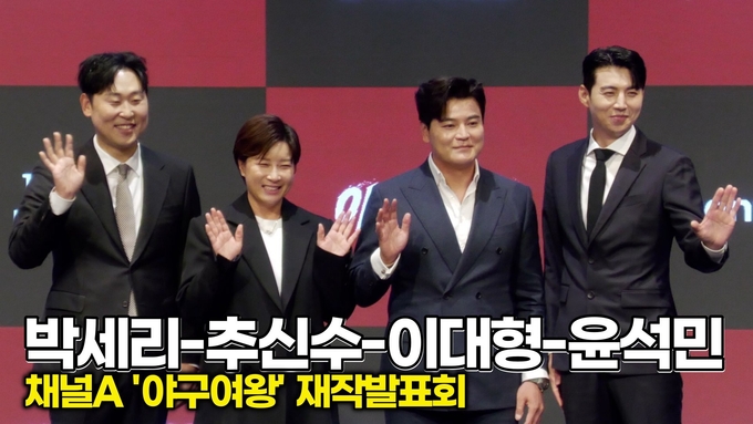 [뉴스인스타 양철수기자] 11월 25일(화) 오전, 서울시 구로구 신도림동 더 세인트에서 채널A 예능 ‘야구여왕’ 제작발표회가 열려 박세리 단장, 추신수 감독, 이대형 코치, 윤석민 코치와 블랙퀸즈 선수 김온아, 김성연, 김민지가 참석해 포토타임을 갖고 있다.