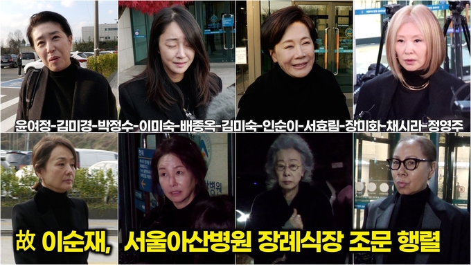 [뉴스인스타 양철수기자] 11월 26일(수) 오후, 서울시 송파구 풍납동 아산병원 장례식장 故 이순재 배우의 빈소에 배우 윤여정, 김미경, 박정수, 이미숙, 배종옥, 김미숙, 인순이, 서효림, 장미화, 채시라, 정영주, 우희진 등이 참배 후 빈소를 나서고 있다.