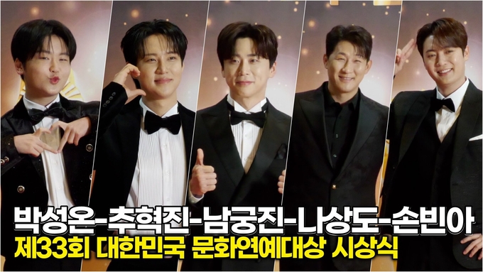 [뉴스인스타 양철수기자] 12월 10일(수) 오후, 서울시 용산구 한남동 그랜드 하얏트 서울에서 제33회 대한민국 문화연예대상이 열려 레드카펫에 트로트 가수 박성온, 이도진, 추혁진, 남궁진, 나상도, 손빈아가 참석해 포토타임을 갖고 있다.