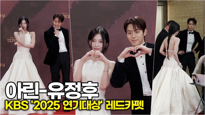 [뉴스인스타 양철수기자] 12월 31일(수) 오후, 서울시 영등포구 여의도 KBS홀에서 2025 KBS 연기대상 식전행사로 레드카펫이 진행돼 주말드라마 '내 여자친구는 상남자' 아린, 유정후가 참석해 포토타임을 갖고 있다.