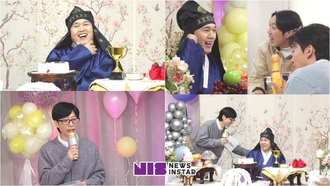 공개된 사진 속에는 김광규의 60돌잔치에 초대를 받은 하객들 하하, 허경환, 주우재의 모습이 담겨 있다. 사회자는 국민MC 유재석으로, 마이크를 든 유재석은 처음 맡는 60돌잔치 사회도 맛깔나게 진행을 하고 있어 눈길을 끈다.