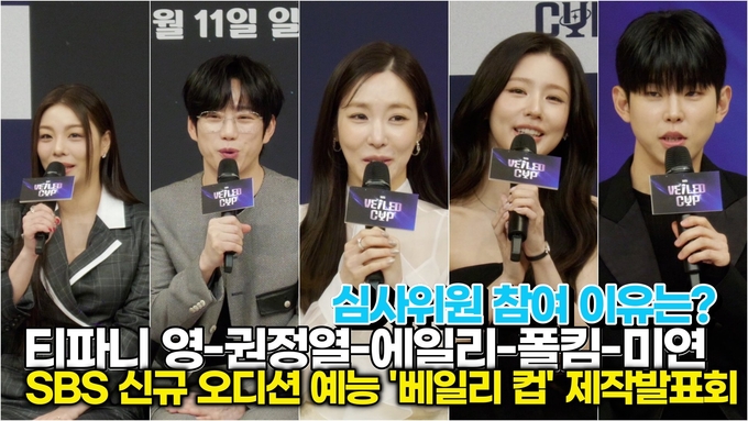 [뉴스인스타 양철수기자] 1월 9일(금) 오후, 서울시 양천구 목동 SBS 방송센터에서 SBS 신규 오디션 예능 ‘베일드 컵’ 제작발표회가 열려 가수 티파니 영, 10cm 권정열, 에일리, 폴킴, 아이들 미연,이 참석해 공통 인터뷰를 진행하고 있다.