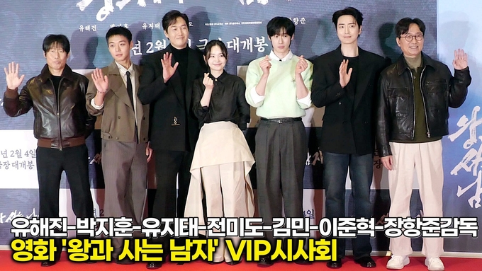 [뉴스인스타 양철수기자] 1월 27일(화) 오후, 서울시 송파구 신천동 롯데시네마 월드타워에서 영화 '왕과 사는 남자' VIP시사회가 열려 배우 유해진, 박지훈, 유지태, 전미도, 김민, 이준혁, 장항준감독이 참석해 포토타임을 갖고 있다.