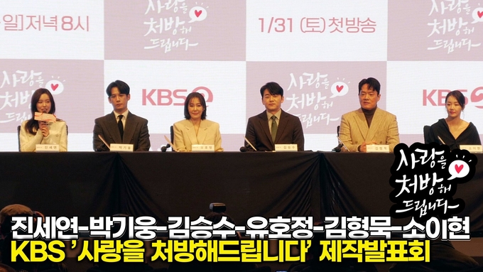 [뉴스인스타 양철수기자] 1월 28일(수) 오후, 서울시 구로구 신도림동 더 세인트에서 KBS 2TV 새 주말드라마 ‘사랑을 처방해 드립니다’ 제작발표회가 열려 배우 진세연, 박기웅, 김승수, 유호정, 김형묵, 소이현이 참석해 공통 인터뷰를 진행하고 있다.