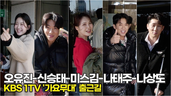 [뉴스인스타 양철수기자] 2월 9일(월) 오후, 서울시 영등포구 여의도 KBS 별관에서 진행되는 KBS 1TV '가요무대' 녹화를 위해 가수 오유진, 신승태, 미스김, 나태주, 나상도가 방송국에 도착해 포즈를 취하고 있다.