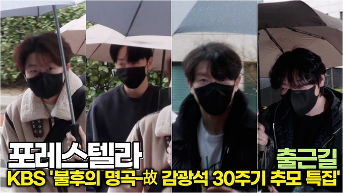 [뉴스인스타 양철수기자] 3월 2일(월) 오전, 서울시 영등포구 여의도 KBS 신관 TV공개홀에서 진행된 KBS 2TV ‘불후의 명곡 - 故 감광석 30주기 추모 특집' 녹화를 위해 크로스오버 그룹 포레스텔라(Forestella) 강형호, 고우림, 배두훈, 조민규가 방송국에 도착하고 있다.