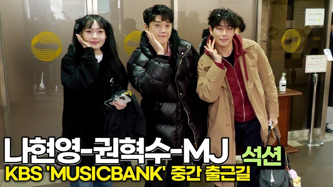 [뉴스인스타 양철수기자] 3월 6일(금) 오후, 서울시 영등포구 여의도동 KBS 신관 TV공개홀에서 KBS '뮤직뱅크' 생방송에 출연하기 위해 프로젝트 혼성그룹 '석션' 권혁수, MJ, 나현영이 중간 출근하고 있다.