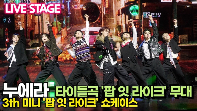 한편 그룹 누에라(NouerA)의 세 번째 미니앨범 '팝 잇 라이크(POP IT LIKE)’의 타이틀곡 '팝 잇 라이크'는 청춘의 순간을 주저 없이 터뜨리겠다는 포부와 자신감을 직관적인 가사와 강력한 훅으로 표현한 곡이다. 에너지가 폭발하는 퍼포먼스와 함께 새로운 챕터를 선언하는 곡으로, 누에라는 젊은 시절의 열정을 가감없이 드러낸다.