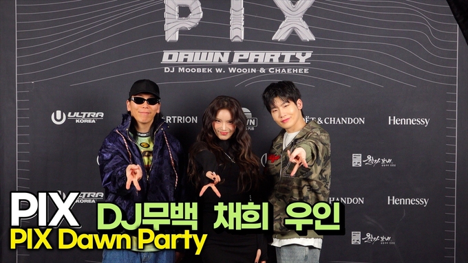 [스타 영상] 혼성그룹 PIX(DJ 무백-우인-채희) 등장부터 텐션 폭발 포토타임 (PIX Dawn Party)