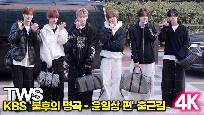 [뉴스인스타 양철수기자] 서울시 영등포구 여의도동 KBS 신관 TV공개홀에서 KBS ‘불후의 명곡 - 작곡가 윤일상 편’ 녹화를 위해 그룹 투어스(TWS) 신유, 도훈, 영재, 한진, 지훈, 경민이 방송국에 도착해 포즈를 취하고 있다.