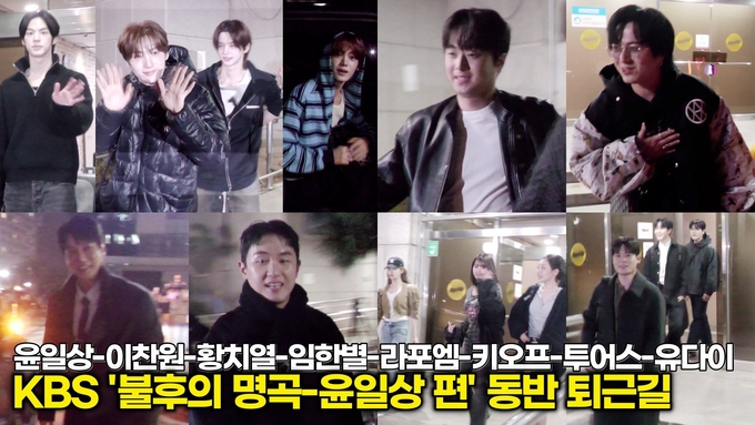 [뉴스인스타 양철수기자] 서울시 영등포구 여의도동 KBS 신관 TV공개홀에서 진행된 KBS ‘불후의 명곡 - 작곡가 윤일상 편’ 녹화를 마치고 가수 윤일상, 이찬원, 황치열, 임한별, 라포엠, 키스오브라이프, 투어스, 타케나카 유다이가 방송국을 나서고 있다.