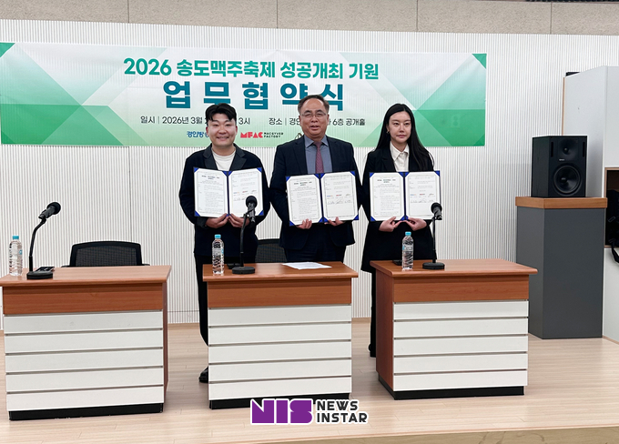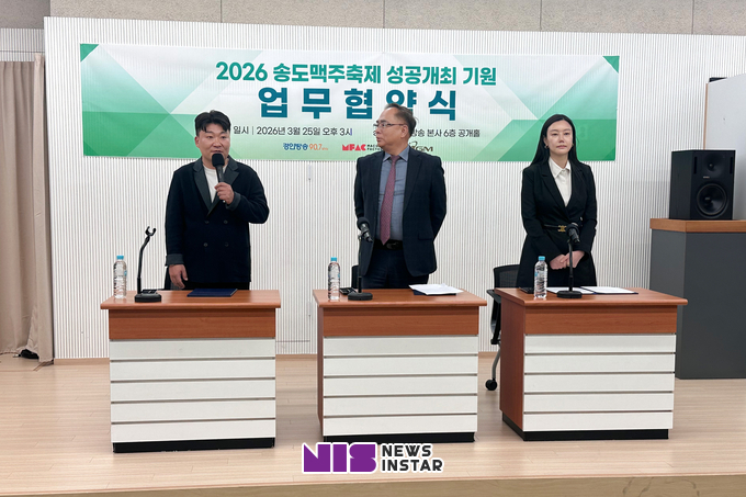 경인방송은 지난 25일 인천 미추홀구 사옥에서 맥가이버팩토리, 엠지엠과 '2026 송도맥주축제'의 성공적인 개최를 위한 업무협약(MOU)을 체결했다고 밝혔다. 이날 협약식에는 김종춘 경인방송 대표이사, 윤성환 맥가이버팩토리 대표, 조서윤 엠지엠 대표 직무대행 등이 참석해 축제 기획부터 운영 전반에 걸친 긴밀한 협력 방안을 논의했다.