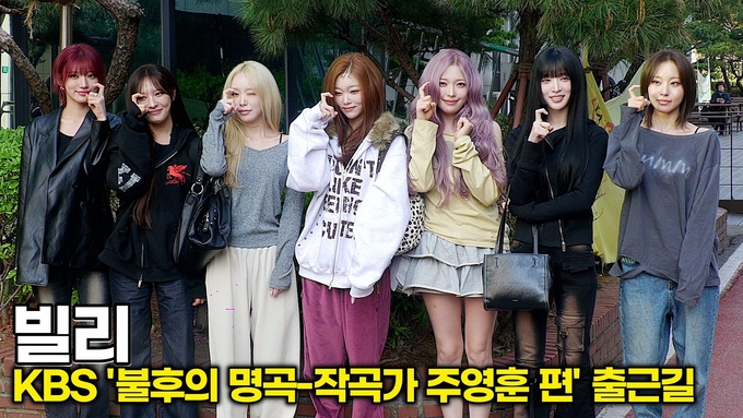 [뉴스인스타 양철수기자] 서울시 영등포구 여의도동 KBS 신관 TV공개홀에서 KBS ‘불후의 명곡 - 작곡가 주영훈 편’ 녹화를 위해 그룹 빌리(Billlie) 시윤, 션, 츠키, 하람, 하루나, 문수아가 방송국에 도착해 포즈를 취하고 있다.