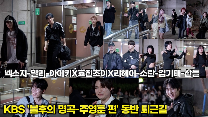 [뉴스인스타 양철수기자] 서울시 영등포구 여의도동 KBS 신관 TV공개홀에서 KBS ‘불후의 명곡 - 작곡가 주영훈 편’ 녹화를 마치고 그룹 NEXZ, 빌리, 아이키 효진초이, 리헤이, 산들, 소란, 김기태 등이 방송국을 나서고 있다.