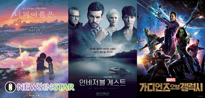 케이블 영화 채널을 통해, 극장을 찾지 않아도 충분히 좋은 영화를 즐길 수 있다. 이번 주 주말, 안방극장을 찾아오는 놓쳤던 영화들을 살펴보자. 토요일: 인비저블 게스트, 너의 이름은, 가디언즈 오브 갤럭시 <사라진 밤>의 원작 <더 바디>의 감독으로 유명한 오리올 파울로 감독의 2016 년작. 스페인 영화 특유의 빠른 전개와 긴장감 넘치는 음악으로토요일 아침을 깨운다. 세심하고 촘촘한 연출과 배우들의 연기는 스페인 영화가 왜 세계적으로 유명한지말해준다. ‘도리아(마리오 카사스)’와 변호사 ‘굿맨(안나와게너)’의 두뇌 싸움과 설전은 결말을 예측할 수 없는 혼란 속에 관객을 초대한다. <인비저블 게스트>는 9일토요일 아침 6시 40분,‘슈퍼액션’을 통해 방송된다. 같은 시간, ‘채널 CGV’에서는 신카이 마코토의 역작 <너의 이름은>이 방송된다. ‘무스비’로 일컬어지는 인연의 끈을 통해 이어지는 남녀의 운명은시간과 공간을 넘나들며 서로를 부른다. ‘타키’와 ‘미츠하’는 서로의 존재를 몰랐지만,어떠한 이유로 마주하며 잔혹한 미래를 바꾸기 위해 노력한다. <언어의 정원> 등 서정적인 작화로 많은 팬을 보유한
