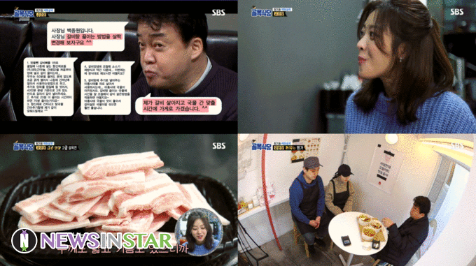 13일 방송된 SBS <백종원의 골목식당>에서는 고깃집, 닭요릿집, 피자집, 붕어빵집, 컵밥집 등 회기동 벽화골목의 다양한 종류의 식당을 컨설팅하는 내용을 다뤘다. 고깃집의 강도훈, 장영주 부부는 지난 방송 이후 악플에 시달려 다소 의기소침한 모습을 보였지만, 백종원 등 MC들의 칭찬세례와 진심 어린 조언에 힘입어 다시 한 번 희망을 다지는 장면을 연출하기도 했다. 부모님에게 물려받은 가게를 이어오던 닭요릿집의 아들 부부는 1대 사장인 부모님에게 인정 받으며 만족스러운 변화를 맞았지만, 가게 내부 사정으로 새로운 보금자리를 찾게 됐다. 피자집은 방송 이후 문전성시를 이루며 성공적인 장사를 했고, 동시에 백종원으로부터 레시피 수정의 기회를 얻기도 했다. 붕어빵집, 컵밥집 역시 백종원의 애정어린 컨설팅을 받아들고 대학가 학생들의 입맛을 맞출 준비를 마쳤다. 특히 이날은 닭볶음탕 마니아 크러쉬가 닭요리집을 찾아 눈길을 끌었다. 닭 전문가답게 다양한 설명을 곁들이며 닭볶음탕을 시식하던 크러쉬는 들고 있던 카메라에 종료버튼을 누르며 웃음을 자아내기도 했다. ‘얼굴 천재’ 차은우가 특별 손님으로 찾아오는 다음 주 <백종원의 골목식당>은 수요일