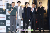 [뉴스인스타=서보형 기자] 김주환 감독과 출연진이 30일 오후 서울 송파구 롯데시네마 월드타워에서 열린 영화 '사자' VIP 시사회에서 포즈를 취하고 있다.