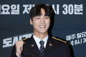 배우 김민재가 29일 오전 서울 마포구 스탠포드호텔코리아에서 열린 MBC every1 예능 '도시경찰 : KCSI' 제작발표회에서 포즈를 취하고 있다. '도시경찰 : KCSI'는 힘든 도시 경찰 생활 속에서 그들의 삶과 애환을 함께 하는 모습을 그린 리얼리티 프로그램이다.