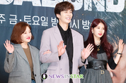 [뉴스인스타=서보형 기자] 배우 황보라, 시성록, 배수지가16일 오후 서울 양천구 SBS에서 열린 SBS 금토드라마 '배가본드(VAGABOND)' 제작발표회에서 포즈를 취하고 있다. '배가본드(VAGABOND)'는 민항 여객기 추락 사고에 연루된 한 남자가 은폐된 진실 속에서 찾아낸 거대한 국가 비리를 파헤치게 되는 드라마다.