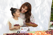배우 정시아가 딸 백서우 양과 함게 2일 오전 서울 마포구 카페 '뽀에뜨'에서 진행된 미국북서부체리협회 '체리데이' 행사에서 포즈를 취하고 있다. '체리데이'는 7월 2일을 '칠이칠이'로 재미있게 부르면서 붙여진 이름으로 매년 미국 북서부 체리협회에서는 여름에 체리가 좋은 이유를 강조하기 위해 '체리데이' 행사를 개최해 왔다. '워싱턴체리'로 알려진 미국 북서부 체리는 미국 북서부의 5개 주에서 생산되며 국내 수입되는 미국산 체리의 80%를 차지하고 있다.