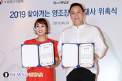 요리연구가 홍신애, 정준하가 25일 오후 서울 중구 퍼시픽 호텔에서 열린 '2019 찾아가는 양조장' 홍보대사 위촉식에서 포즈를 취하고 있다.
