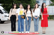 레드벨벳 멤버들이 21일 오전 서울 영등포구 KBS 신관에서 진행되는 KBS 2TV '뮤직뱅크'리허설에 참석하기 앞서 포즈를 취하고 있다.