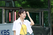 레드벨벳 슬기가 21일 오전 서울 영등포구 KBS 신관에서 진행되는 KBS 2TV '뮤직뱅크'리허설에 참석하기 위해 이동중이다.