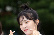 레드벨벳 슬기가 21일 오전 서울 영등포구 KBS 신관에서 진행되는 KBS 2TV '뮤직뱅크'리허설에 참석하기 앞서 포즈를 취하고 있다.