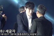 27일 오후 서울 서초구 양재동에 위치한 양재aT센터에서 '2019 아프리카TV 시상식(= 2019 BJ Awards)'이 진행되어 BJ 송대익이 '최고의 콘텐츠' 부문 상을 수상 받고 있다.